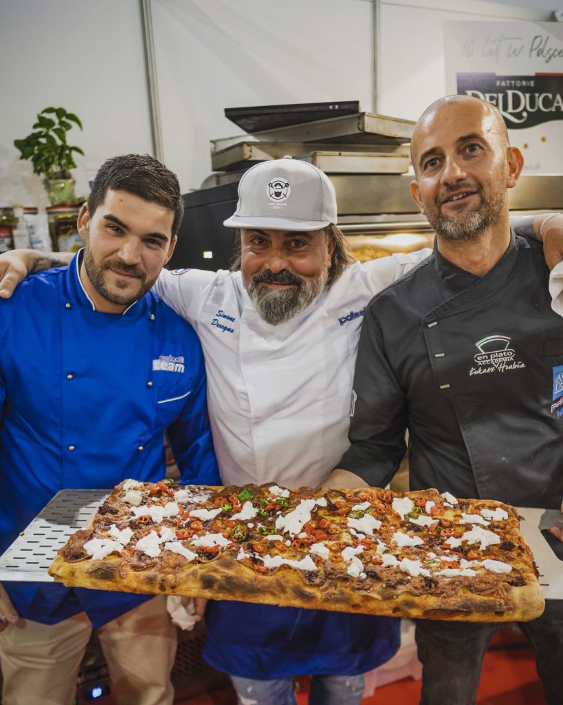 Można było również skosztować produktów, które na co dzień wybierają nasi Partnerzy do swoich lokali, m.in. marynaty, salsy, trufle i grzyby, włoskie wędliny i mięsa, oliwy i octy, a także dodatki idealnie dobrane na pizzy, pinsie, focacci. Nad wypiekami czuwali bezbłędni pizzaiolo – Łukasz Hrabia Accademia en Plato oraz międzynarodowy mistrz pizzy Simone Desogus.
